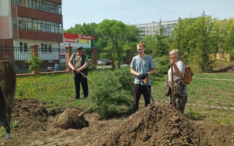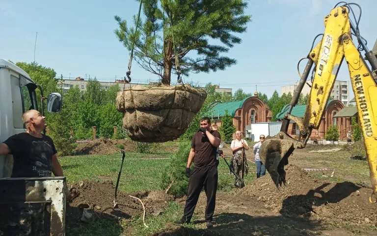 Были приглашены прихожане и все неравнодушные люди для участия в благоустройстве территории: высадке деревьев, кустарников, цветов и разбивке клумб. В мае проведены геодезические работы и планировка территории. В начале лета были высажены 17 крупномерных деревьев хвойных и лиственных пород. В благом деле принимали участие прихожане храма, преподаватели и учащиеся Воскресной школы.