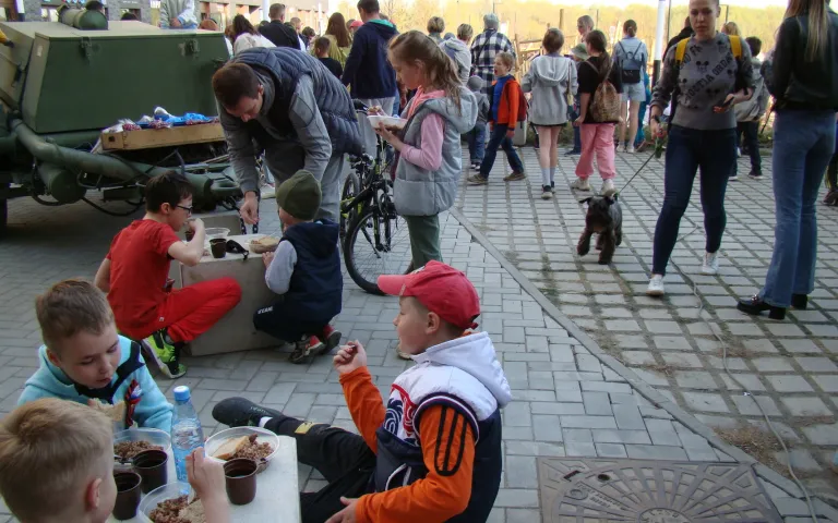 Во дворе для возможности сделать фото стояла военная техника, традиционно разместили военную полевую кухню.