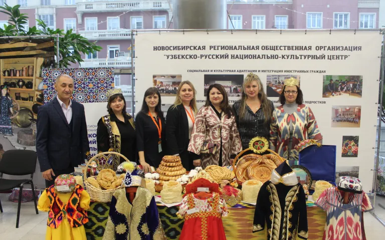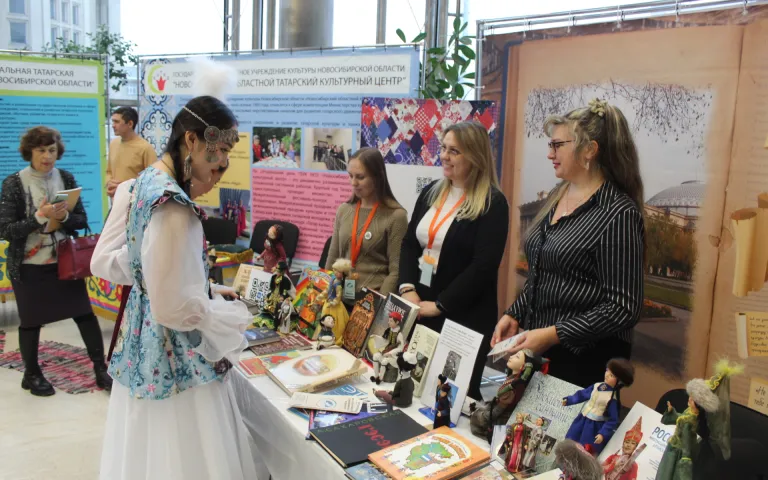 Выставка о деятельности национальных организаций, их вкладе в развитие Новосибирской области и города Новосибирска, о культурных традициях народов, проживающих на территории города и области прошла в фойе второго этажа. Городской межнациональный центр развернул свою книжно- предметную выставку, продемонстрировав литературу на разных языках и стилизованных кукол, представляющих определенный народ.
