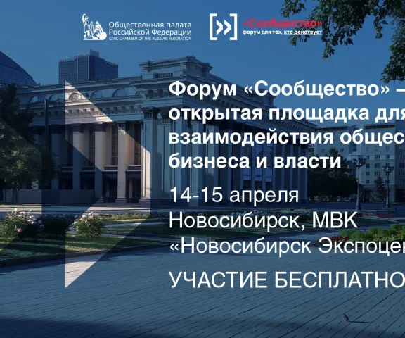 14-15 апреля в Новосибирске пройдет Форум «Сообщество», организованный Общественной палатой Российской Федерации.