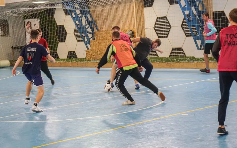 В этом году мы провели свой ежегодный футбольный турнир среди 10 дворовых команд города Новосибирска, большинство команд с Дзержинского района. Сегодня футбол был не на дворовом поле, как в предыдущие года, а на стадионе, в специализированном помещение, где все соблюдено для футболистов - душ, раздевалка, паркет.