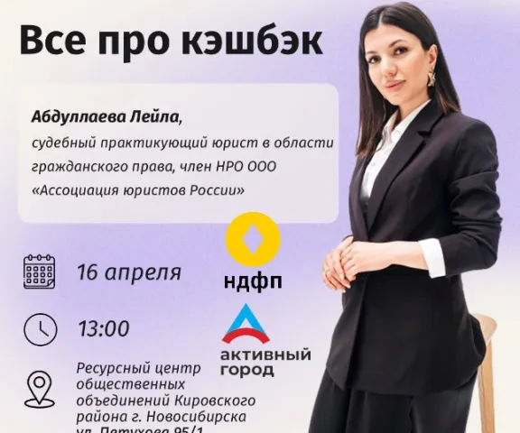 16 апреля в 13:00 в Ресурсном центре Кировского района состоится лекция от опытного юриста Лейлы Абдуллаевой.