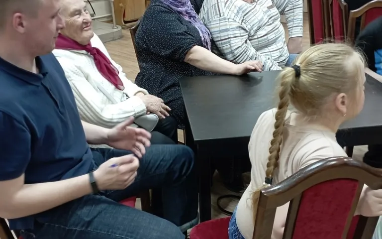 В нашем кинотеатре- все устроились поудобнее и надо было не только смотреть фрагменты кинофильмов, но и отвечать на вопросы. Старшее поколение выступало лидером, а где-то и младшие не падали духом! И даже когда один фрагмент из «Карнавальной ночи» режиссёра Эльдара Рязанова завершился молодые люди попросили продолжение фрагмента, где актёр Сергей Филиппов рассказал про жизнь на Марсе.
