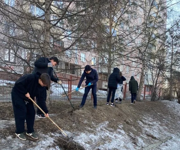 Часть активистов принимают участие в субботнике на массиве, приводят периметр территории в надлежащее состояние.