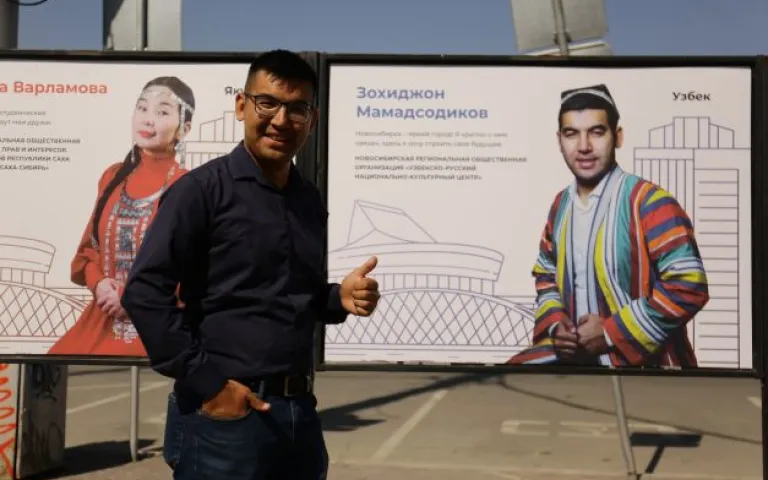 Открытие фотовыставки «Многонациональный Новосибирск в лицах», которая приурочена к дню России. Инициаторами стали лидеры национальных объединений города Новосибирска — участники молодежной межнациональной смены «ИнтерАктив» 2021 года.
