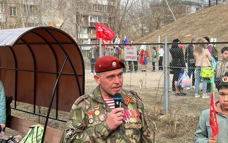 Рядом с камнем был установлен торжественный караул. Камень покрыт зеленым шелком, который при открытии был снят постовыми. Камень установлен по инициативе совета ТОС , благодаря помощи депутатов И.Н. Титаренко и И.С.Ильиных. На камне установлена памятная доска с подписью от благодарных соотечественников. Председатель ТОС И.А.Подвигина отметила, что к камню можно возложить цветы как воинам ВОВ, так и других военных действий. Кроме нее выступили ветеран ВОВ Шаболина Л.А., ветеран национальной гвардии и участник боевых действий в Чечне Синянский И.А., а так же депутаты. Объявлена минута молчания и торжественный проход «Бессмертного взвода».