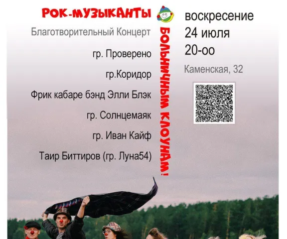 Друзья! 24 июля в «Бродячей собаке» пройдёт первый благотворительный рок-концерт местных групп в пользу АНО «Больничные клоуны НОС».