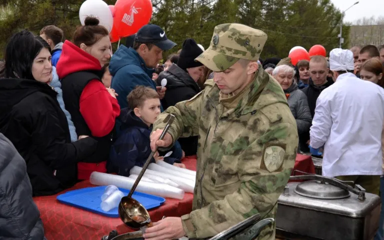 Наконец, главным аккордом дня стала полевая кухня, которой управляла команда опытных поваров, угощавших гостей ароматной гречневой кашей с тушёнкой, словно возвращающей ко временам юности фронтовиков.