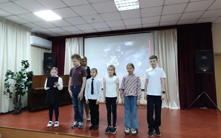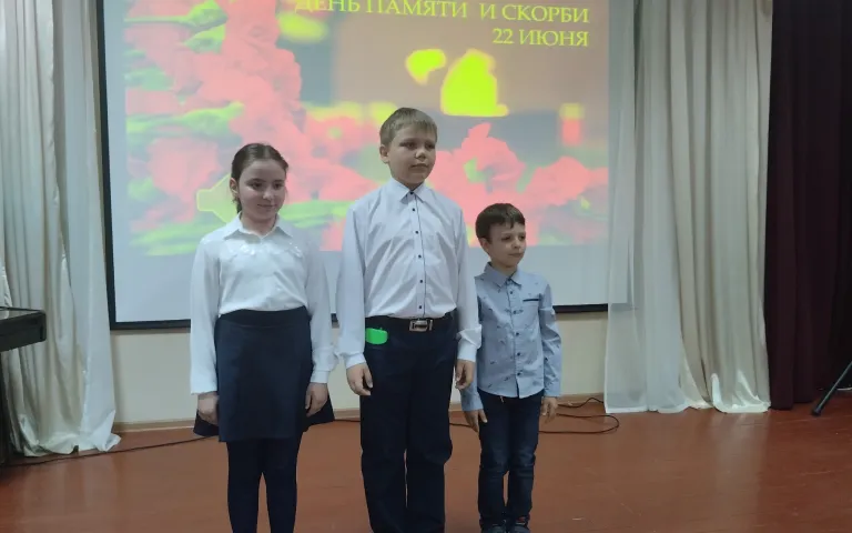 Ведущие сегодня были ДЕТИ. Они всем взрослым и ребятам провели Урок Памяти о всех погибших и не вернувшихся с поля боя 1941 года.