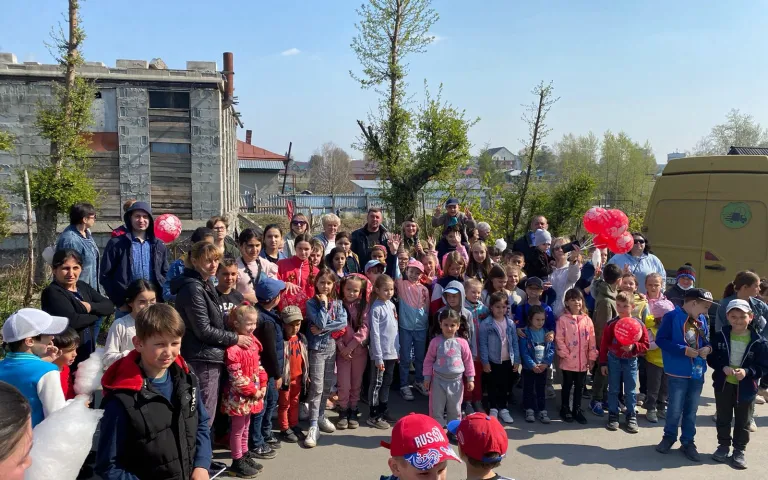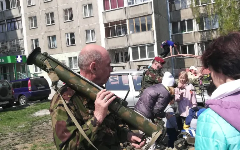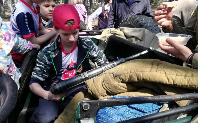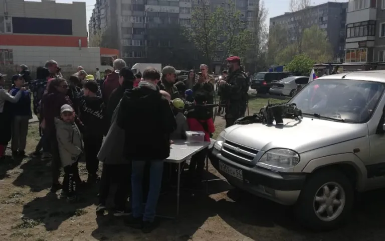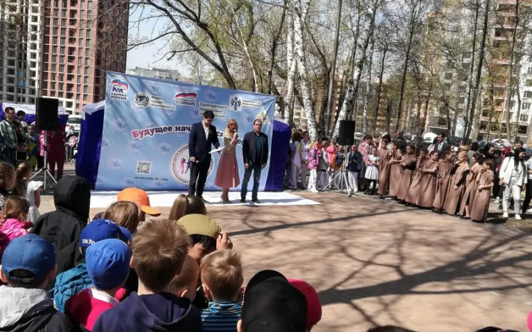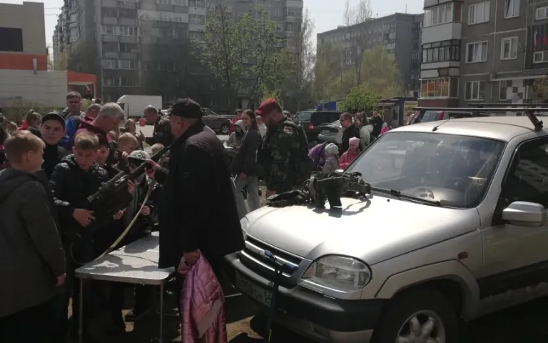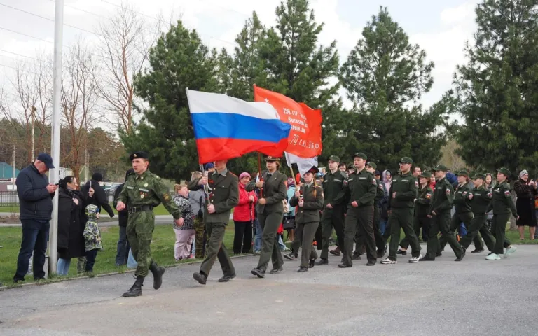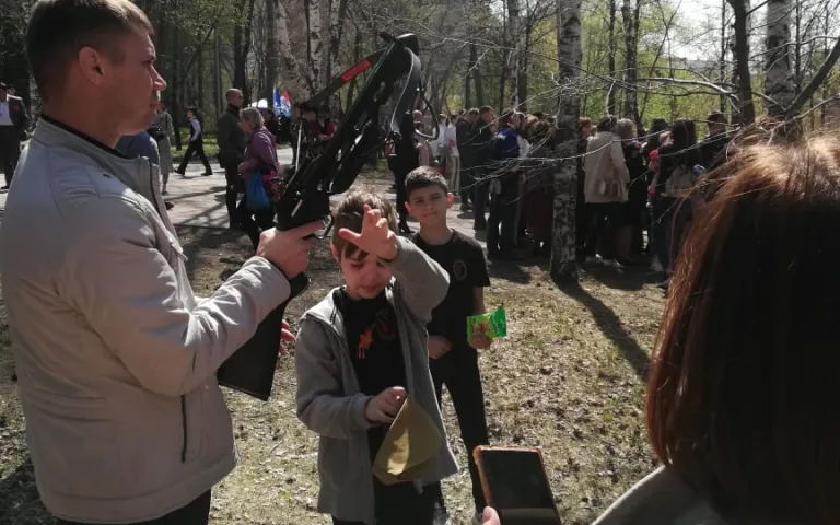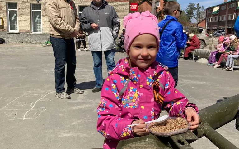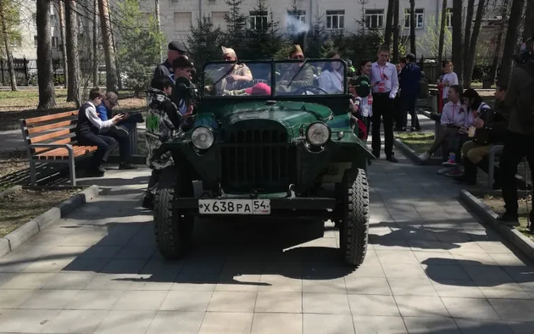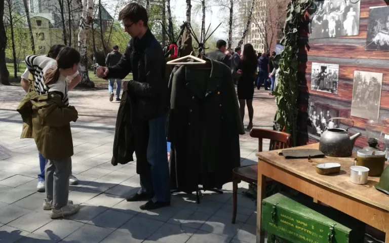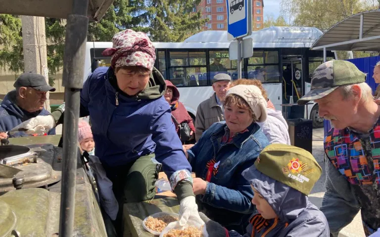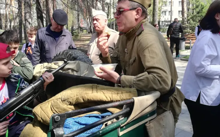 Также проводится праздничная концертная программа с песнями военных лет, проходит акция «Георгиевская ленточка», на территориях располагается полевая кухня.