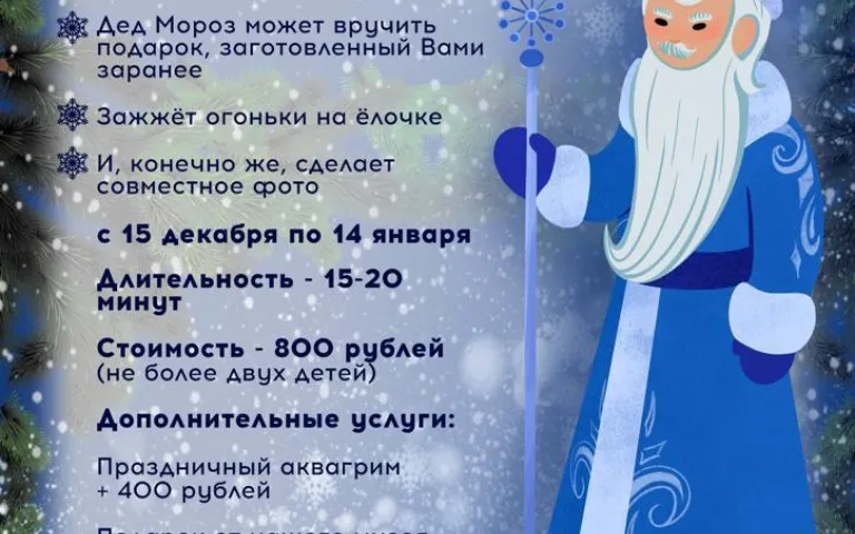 Дети станут непосредственным участниками представления. Поучаствуют в конкурсах, разгадают загадки, сделают новогоднюю игрушку своими руками, посетят Берестяную лавку