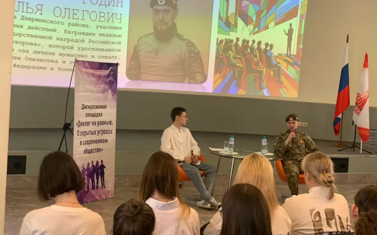 Основной акцент встречи был сделан на личных впечатлениях и опыте участника СВО, который поделился своими мыслями о значимости патриотизма, служения своему народу и о том, что для молодежи сегодня крайне важно осознавать свою ответственность за будущее страны, за свои действия, особенно в сети Интернет. Студенты могли задавать вопросы, поделились своими взглядами и обсудили важные социальные темы.