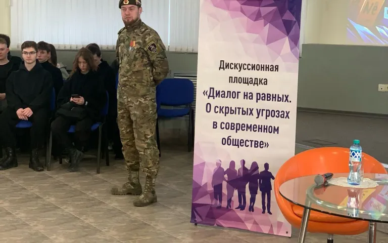 27.03.2025 года в Новосибирском химико-технологическом колледже им. Д.И. Менделеева состоялась встреча участника специальной военной операции со студентами в рамках серии дискуссионных площадок «Диалог на равных. О скрытых угрозах в современном обществе»