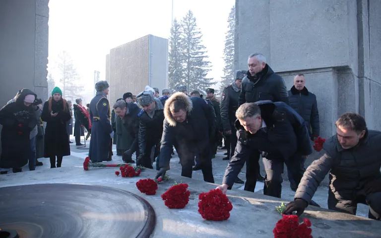 Вместе с другими горожанами участие в церемонии приняли мэр Анатолий Локоть и губернатор Новосибирской области Андрей Травников. Собравшиеся почтили память бойцов минутой молчания.