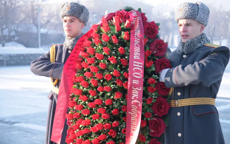 Новосибирцы возложили цветы к Монументу Славы. 2 февраля, вся Россия отмечала 80-летие победы советских войск в Сталинградской битве.