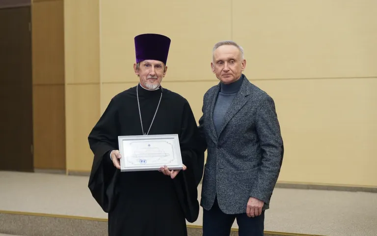 Также в рамках Парламентских встреч Андрей Борисович Панфёров вручил награды Законодательного собрания представителям Новосибирской епархии - секретарю Новосибирского Епархиального управления протоиерею Георгию Патрину и заведующему канцелярией Новосибирской епархии протодиакону Александру Егорову.