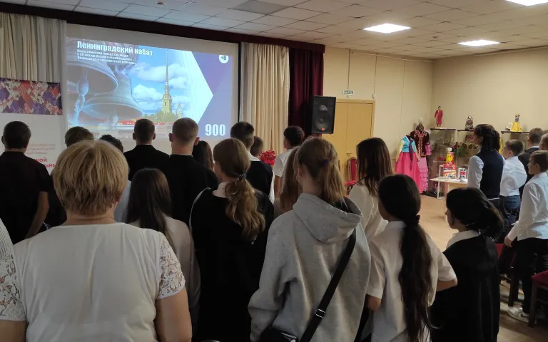 Участники торжественного мероприятия - восьмиклассники и педагоги МБОУ СОШ № 50 и МБОУ СОШ № 187 - почтили минутой молчания память погибших защитников и жителей Ленинграда и символично зажгли свечи в честь 80-летия освобождения города на Неве.