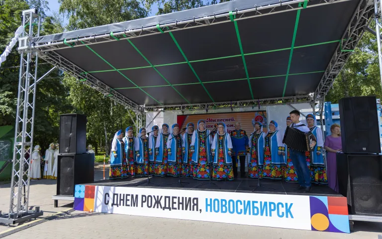 Для гостей Берёзовой рощи устроили концертную программу. На сцене выступили коллективы советов ветеранов и сводный хор из 130 человек.