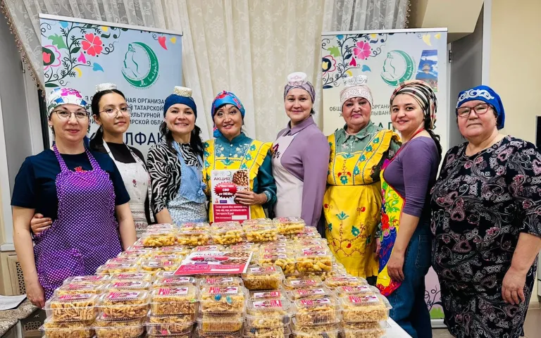 26 января в Доме татарской культуры на Алейской, 16, прошла благотворительная акция «Чак-чак для СВО». Её участницами стали женщины разных национальностей и возрастов, включая активисток женской организации «Ак калфак» Региональной Татарской Национально-Культурной Автономии Новосибирской области, членов комитета Семей воинов Отечества по Новосибирской области и родителей детей из Детской студии татарского искусства ГБУК НСО «Новосибирский областной татарский культурный центр». Продукты, упаковку для акции собрали члены совета Региональной Татарской Национально-Культурной Автономии Новосибирской области и неравнодушные жители нашей области. Те, кто не смог лично присутствовать, но желали сделать угощение, передали заранее дома приготовленный чак-чак. Было упаковано более 300 контейнеров по 200 г. Сладости, изготовленные добрыми руками сестер и матерей, передадут волонтерам новосибирского Фонда помощи участникам СВО и их семьям «#СВОихНеБросаем», которые в начале февраля доставят их «за ленточку» на фурах, выделенных правительством НСО. Также 100 контейнеров до конца января будут переданы тяжелораненым бойцам в военный госпиталь совместно с комитетом Семей воинов Отечества по Новосибирской области.