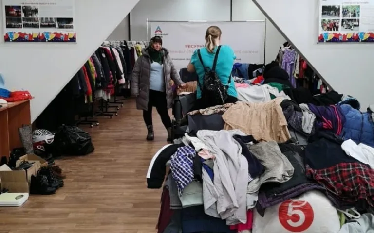 Оставшиеся вещи после акции будут переданы в социальные службы района.