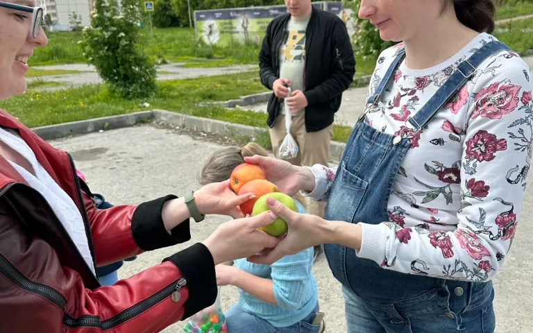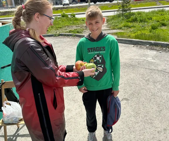 В награду за экологическую сознательность каждому полагалось яблоко