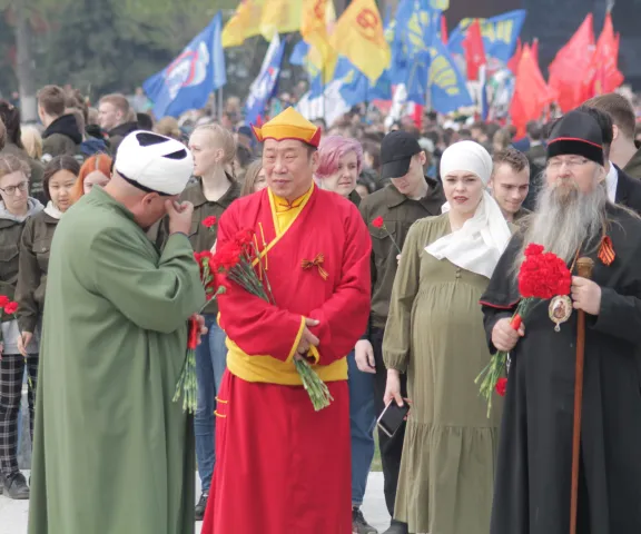 Многонациональная молодежь Новосибирска приняла участие в шествии многонациональной колонны на Монументе Славы!