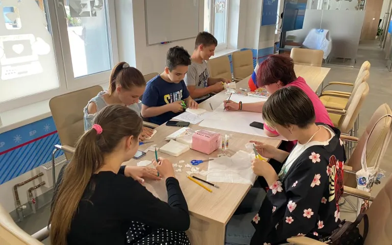 На мастер-классе ребята самостоятельно делали оригами, создавали плакат с флагом и границами нашей страны, а после ребят ждал вкусный обед.