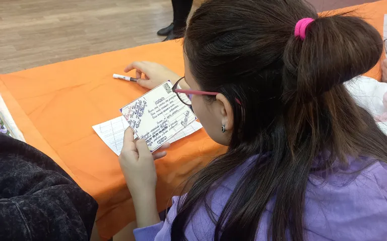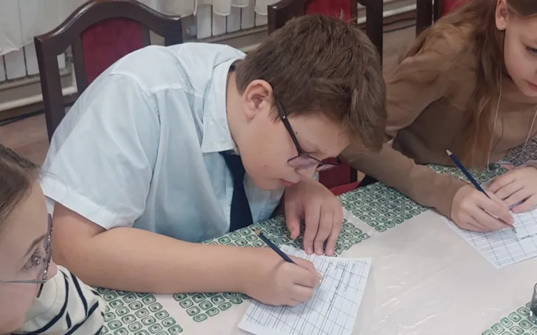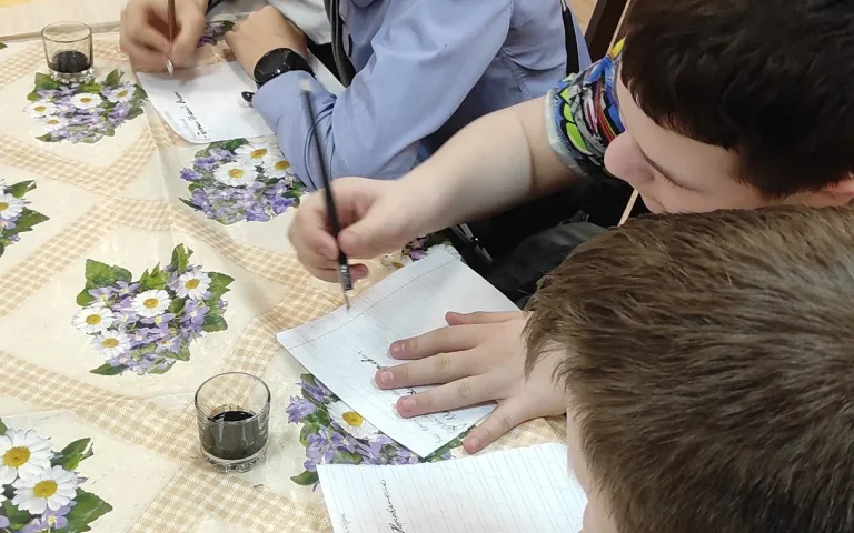 Безусловно, самым увлекательным этапом программы стало ручное письмо! Оказывается, современным школьникам очень нравится писать пером и чернилами. Ребята тщательно выводили буковки своего имени и фамилии и внимательно слушали советы старших, как макать перо, как регулировать нажим. Правда, не обошлось и без клякс! При этом все – в общей сложности более 80 школьников среднего звена – с удовольствием провели время, и кто-то всерьёз задумался поработать над своим почерком.
