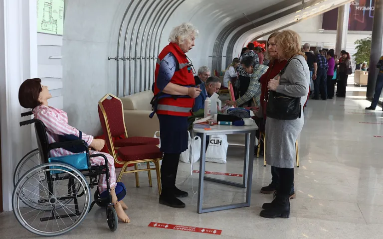 За несколькими столиками разместились врачи, у которых пожилые люди могли сдать кровь на сахар и холестерин, сделать УЗИ вен и получить консультацию. Детям нанесли аквагрим, взрослым показали, как оказывать первую помощь.