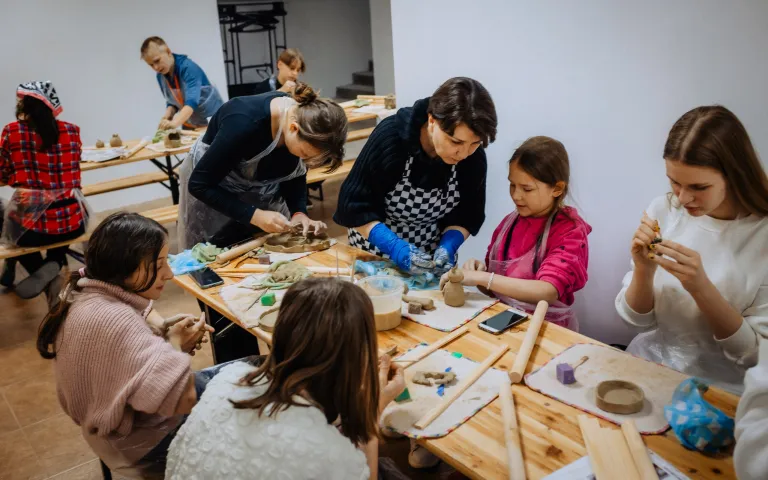 Поистине уникальные мастер-классы по живописи и лепке из глины здесь проходят в строящемся Храме Рождества. И такой АТМОСФЕРЫ больше нет нигде!