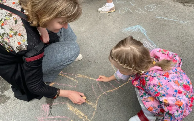 Весёлая атмосфера не оставила равнодушными и взрослых. Гости праздника рисовали на асфальте мелками, играли в интерактивные игры, составляли кантри-букеты, примеряли на себя крылья в фото зоне, чтобы показать колоссальную силу и защиту любви между ребёнком и родителями.