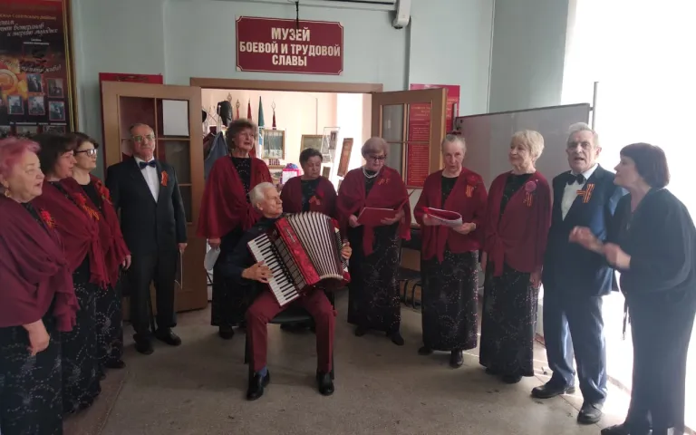 Творческий коллектив – вокальный ансамбль «Славяне», один из любимейших жителями Советского района. В репертуаре «Славян» прозвучало много всеми любимых песен. С большой теплотой были исполнены русские народные и советские песни.