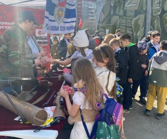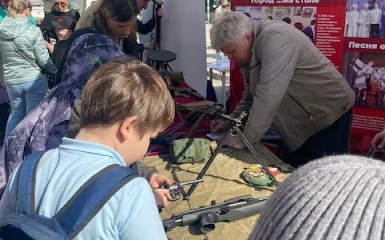 На площадке работали несколько интерактивных зон, ветераны силовых структур, выставка оружия которых вызывает всегда большой интерес у младшего поколения, мастер-классы от ТОС «Заря» и студии декоративно-прикладного искусства «У Татьяны». Участники мастер-классов изготовили нагрудные броши с георгиевскими ленточками – символом Великого праздника, в трех разных вариантах.