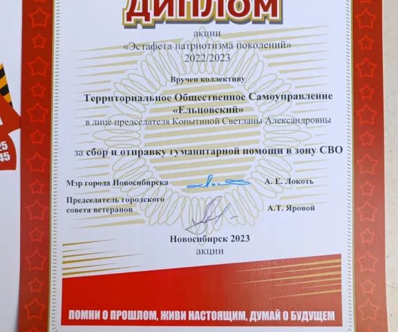 Сегодня мы получили стелу и диплом акции «Эстафета патриотизма поколений». Это второй этап