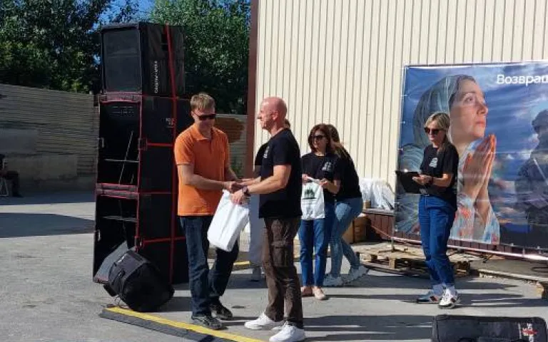 27 июня Фонд отгрузил сотую фуру в зону СВО на своем складе. Самые активные волонтеры получили благодарственные письма от фонда. В Ресурсном центре Калининского района (ул. Б. Хмельницкого, д.8/1) состоялось вручение благодарственных писем волонтерам, которые два года делают маскировочные сети для СВО.