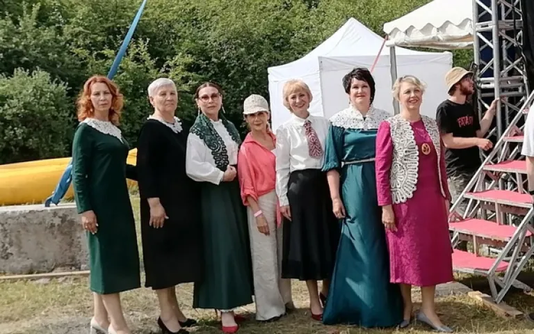 Творческое объединение «А.Р.Т. Берегиня» студии стиля «Элегантный возраст» и еще десятки тысяч гостей приехали на международный фестиваль этнической музыки и ремесел, который проходил 6 по 9 июля в Шушенском. На конкурс «Традиционные ремёсла», в этом году заявились 159 мастеров из 37 регионов России. В финал вышли 12 человек. Среди них и наша Надежда Геннадьевна Митюкляева, которая получила диплом за представленную коллекцию изделий вологодского кружева.