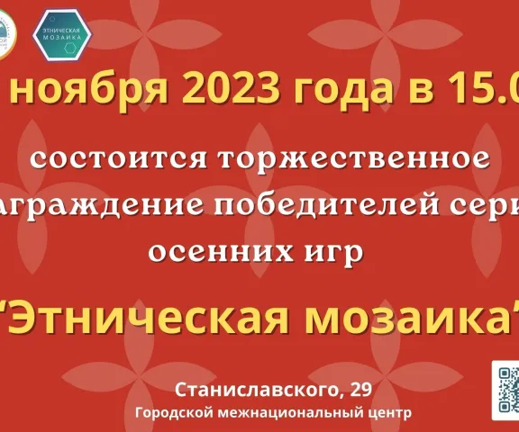 8 ноября в Городском межнациональном центре состоится финал и награждение команд победителей и их руководителей по итогам осенней серии игр «Этническая мозаика».