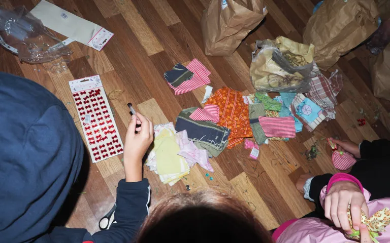 На второй площадке представители Новосибирского областного Российско-Немецкого Дома познакомили ребят с техникой аппликации «Шпрух» – и они выполнили рисунок в этой технике.
