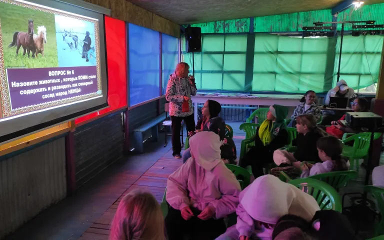 Во время игры по народу коми тоже были интересные моменты. Например, ТУРУН ВОЖАН ЛУН – праздник смены чего? Стрелочки указывали на траву, т.е. праздник ТРАВЫ. Неожиданным стал ответ «Праздник Дров», так как рядом ЛЕС (так аргументировала команда свой ответ). Столица народа коми – СЫКТЫВкар – на какой реке находится? Правильный ответ «Сыктыв» (подсказкой в тексте был крупный шрифт) не написали, так как подумали, что слишком лёгкий вопрос.