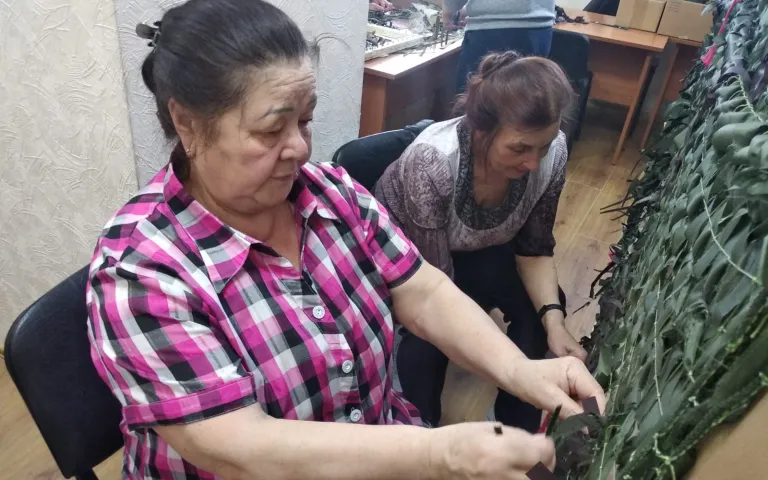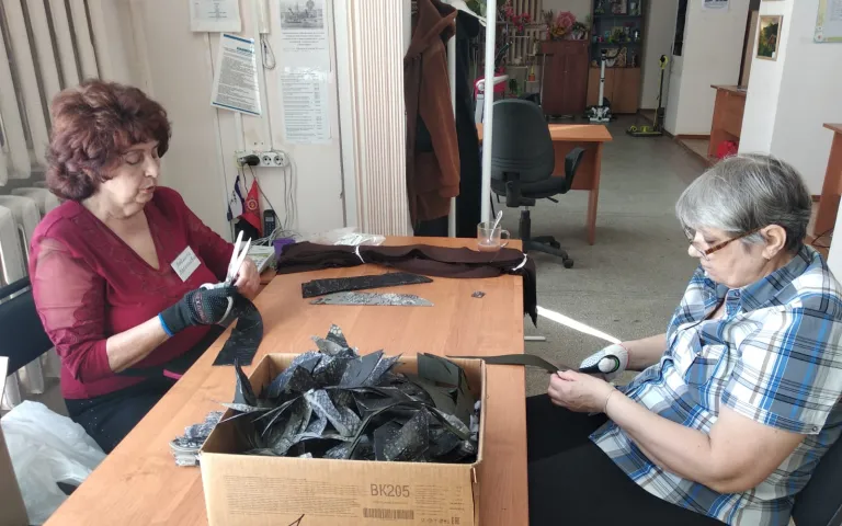 Далее Оксана и Юлия начали искать помещения, обратились к бизнесменам, общественникам, и у них появился ещё один пункт. Со временем открылись еще два пункта, к плетению маскировочных сетей также присоединились женщины ТОСа поселка Геологов (Советский район) и женщины поселка Толмачево.