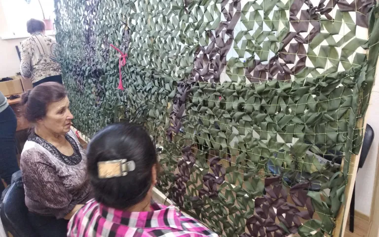 Не так давно волонтер, Доброволец – 2021 года Оксана Никонова с сестрой Юлией создали в социальной сети, вернее, в мессенджере Telegram-канал «ГУМ.ПОМОЩЬ Zа наших» и добавили туда всех неравнодушных друзей из личных списков контактов. На данный момент в группе состоят 1095 участников. Два месяца назад, 13 января 2023 года добровольцы начали плести маскировочные сети, и это был первый пункт плетения в Ресурсном центре общественных объединений Советского района ул. на Новоморская, 12.