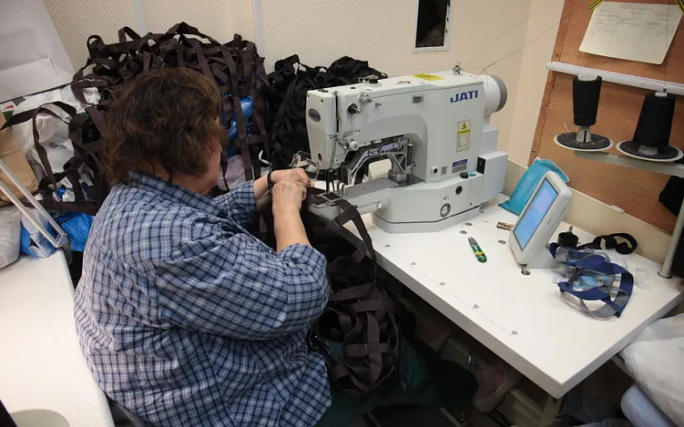 Оксана Гринкевич, хозяйка ателье и куратор волонтёрского движения «Золотые руки ангела», вместе со своей командой изготавливает носилки для раненых из парашютных строп. Мастерская по пошиву одежды практически полностью переориентировалась на нужды спецоперации.