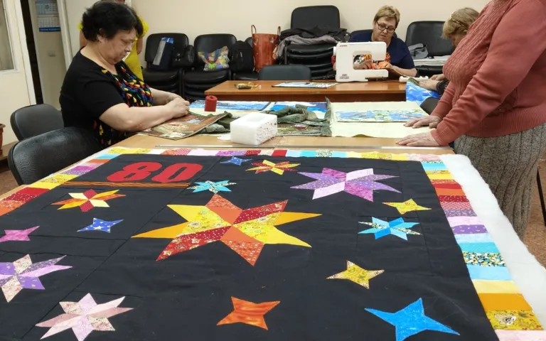 Женский клуб «Рукодельница» ресурсного центра Калининского района не покладая рук готовится к проведению мероприятий, посвящённых празднованию 80-летия Победы в Великой Отечественной войне.