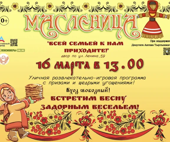 16 марта в 13.00, проводы зимы и встреча весны состоится во дворе дома по ул.Ленина,59 (Железнодорожный район). Вход свободный.