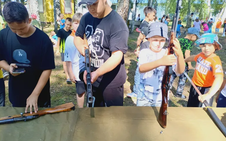 В тени берез развернулась площадка «Казачьи традиции» под руководством атамана СКО «Левобережное » Алексея Иванова, на которой ребята могли сыграть в старинные хороводные и молодецкие игры. А рядом работала интерактивная выставка «Оружие Победы», организованная Новосибирским городским казачьим обществом им. Атамана Ермака, на которой были представлены образцы оружия Русской Армии разных эпох - от Императорской до современной. Мальчишки и девчонки с удовольствием примеряли в руках вес оружия советского воина-победителя - ППШ и пулемета Дегтярева, крутили шашки и кинжалы, меряли современные бронежилеты и шлемы. И слушали рассказы казаков о воинах, защищавших и защищающих наше Отечество с этим оружием. Особенно ценны были рассказы наших современников - участников Специальной военной операции.