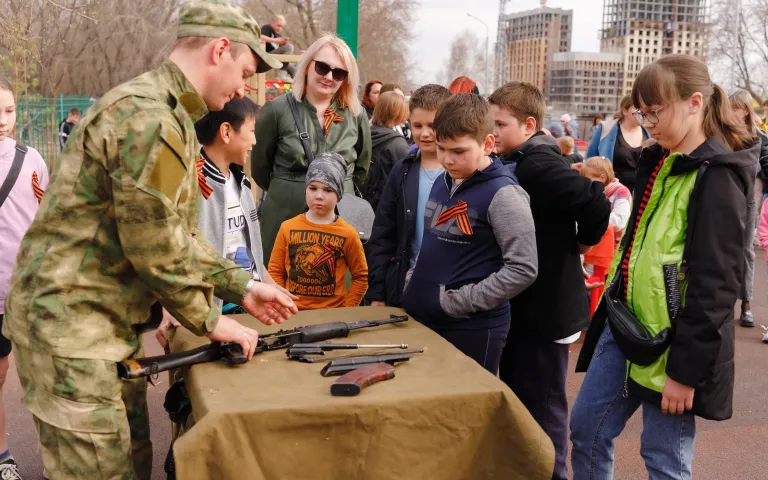 Команда НРОО «Наше здоровье» ежегодно готовит праздничные мероприятия для тех, кто боролся и одержал Победу. Красочное театрализованное представление, полевая кухня с солдатской кашей, мастер классы по сборке-разборке автомата, игровые программы для ребятишек, объединяют всех гостей, собирающихся на праздник. На концерте 4 мая, проводимом в сквере «Новогодний», в честь ветеранов звучали мелодии военных лет. Праздник начался с «Марша Победы» в исполнении Романа Потапова. С огромной радостью встретили выступление дуэта аккордеонистов «Twins» - «Смуглянка», «Яблочко», «Попурри на тему песен войны», «Москва», «Катюша», «Маруся», «Калинка» были приняты на ура! Екатерина Мирошникова радовала своим волшебным голосом, звучали «Россия – это мы!», «Ах эти тучи в голубом». Изюминкой концертной программы стала фланкеровка шашками в исполнении Светланы Борисюк.