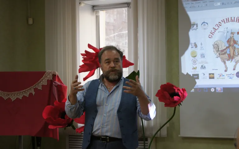 После осмотра экспонатов выставки и замечательных фотоссесий перешли к повестке круглого стола. Программу дискуссионной площадки открыли видеофильмом, созданным @https://vk.com/vir21(Студия НаСтАРТ), который продемонстрировал большую проделанную работу организаторами и партнерами проекта «Сказочный дозор» от истоков зарождения идеи до реализации самого проекта.