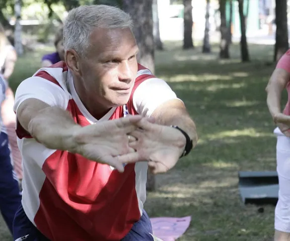Занятия проходят на свежем воздухе бесплатно для всех желающих, без возрастных ограничений. Разработанная Владимиром Ефремовым система упражнений направлена на профилактику заболеваний позвоночника и суставов, укрепление организма в целом.