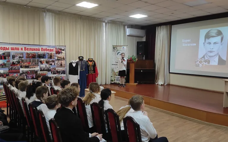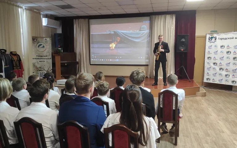 Стихи, посвященные событиям Великой Отечественной войны и рассказ о подвиге нашего современника, недавнего студента этого же колледжа Александра Каракова, погибшего в ходе Специальной военной операции на Украине, соединила знаменитая песня «Журавли» на стихи Расула Гамзатова, сыгранная в начале выступления на саксофоне и исполненная ребятами в финале.