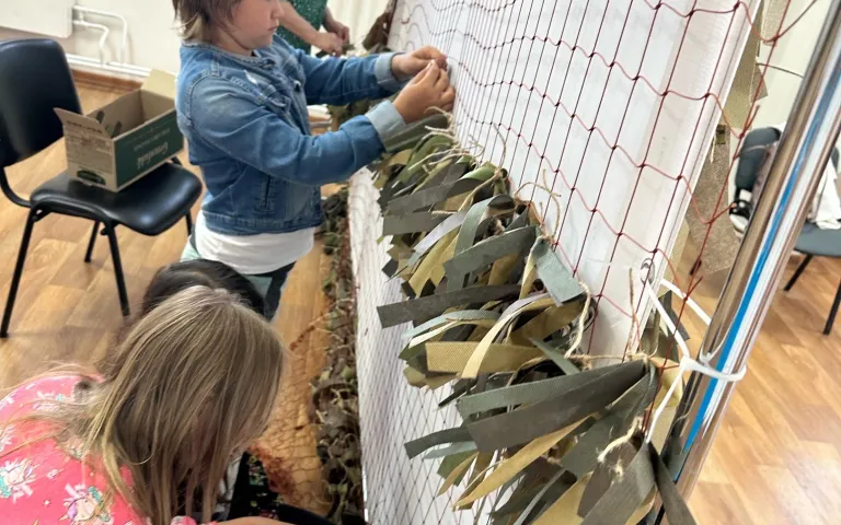 Патриотическое воспитание продолжилось связыванием «паучков» и плетением маскировочных сетей совместно с активистами серебряного возраста принимающих участие в помощи солдатам СВО.